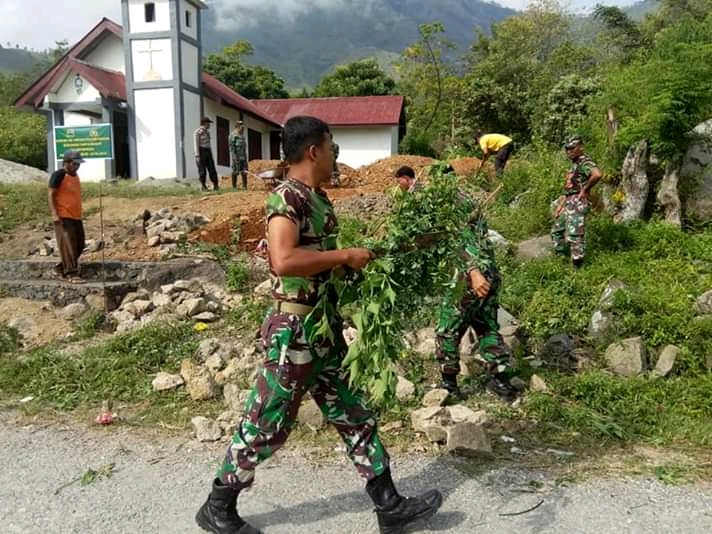 Personil Koramil 04 HB Bersihkan Rumah Ibadah