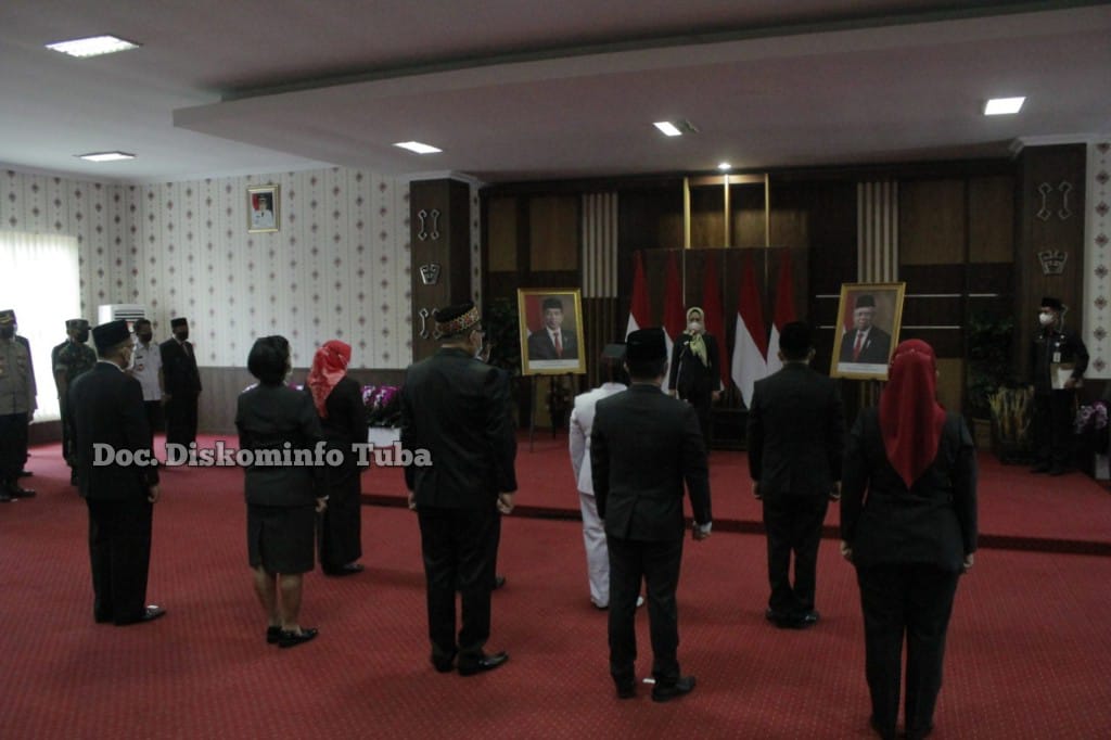 METRORAKYAT.COM, TUBA – Bupati Tulang Bawang Dr Hj Winarti SE MH melaksanakan penyegaran di lingkup Pemerintah Daerah Kabupaten Tulang Bawang. Tercatat 9 pejabat yg dilantik pada kesempatan hari ini. Diantara pejabat tinggi Pratama tersebut terdapat ibu Lusiana M.AP yg menjadi asisten 3 bupati bidang administrasi umum ,Dr (Cand) Dedy Palwadi AP.,MM yg dilantik menjadi Kadis PTSP , Dra. Desia Kesumayuda M.Si menjadi kadis Kominfo, M.Puncak Setiawan SP.,MM yg menjadi Sekretaris DPRD Kabupaten Tulang Bawang, Hariyanto SE,.M. Ec.Dev hijrah ke Dinas PUPR Kabupaten Tulang Bawang Dst.