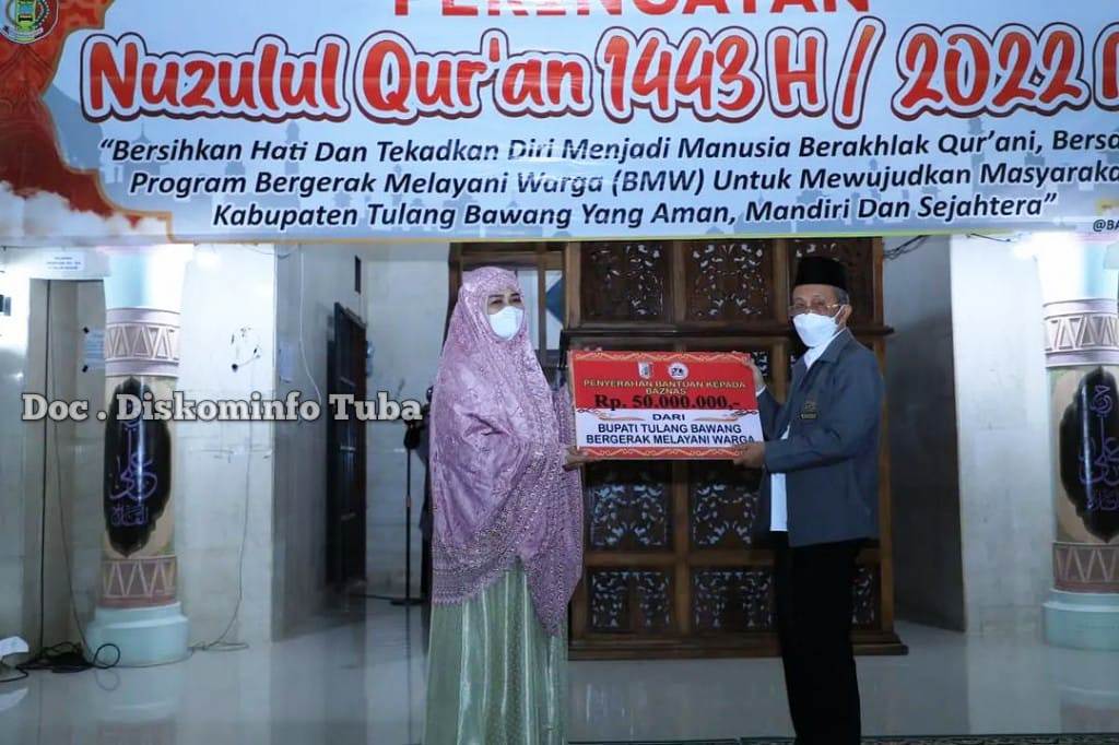 Bupati Winarti Gelontorkan 300 Juta Rupiah Saat Nuzulul Qur’an di Islamic Center Menggala
