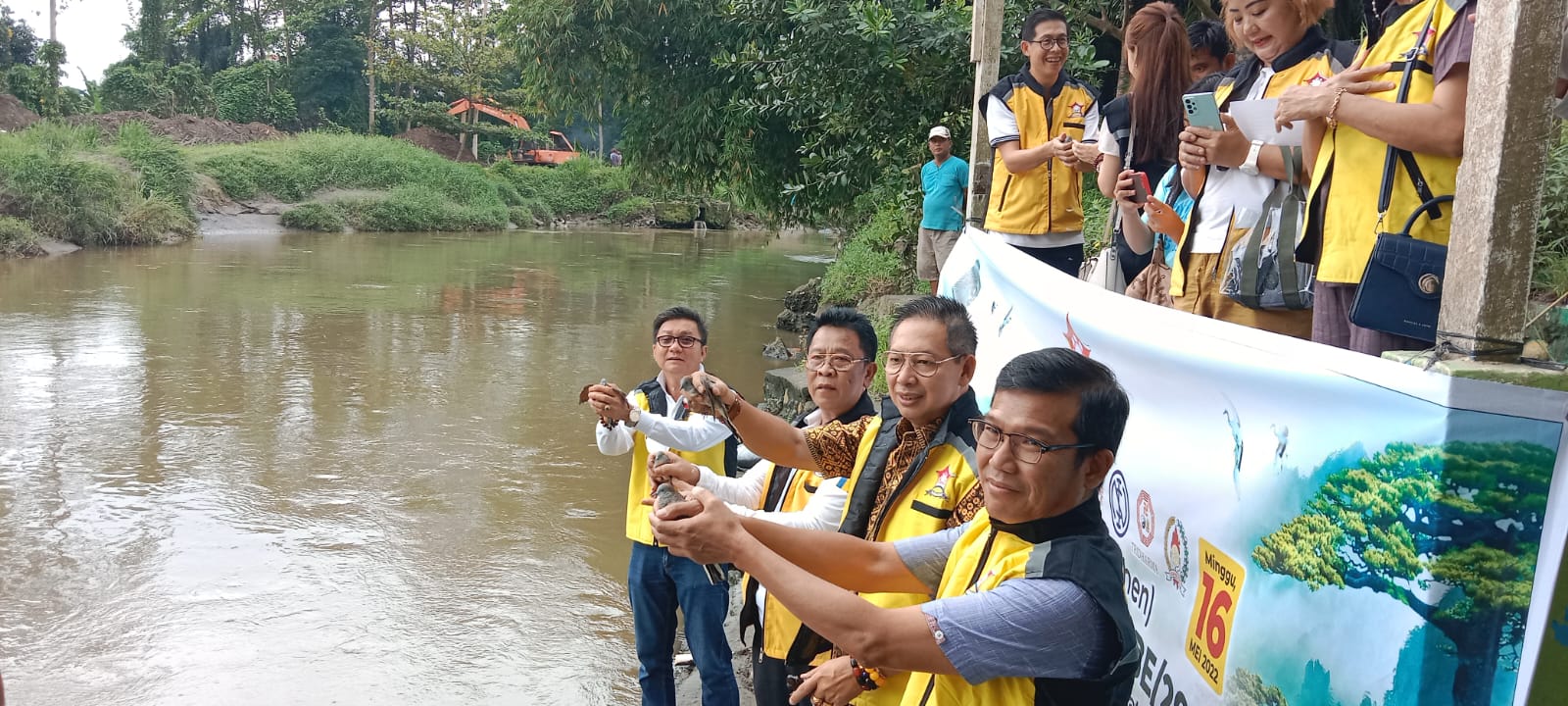 Tampak Pengawas Permabudhi Sumut yang juga Anggota DPRD Medan, Drs Wong Chun Sen Tarigan, M.Pd.B, Ketua Permabudhi Sumut, Ketut Supardi, Angpun Siong dan Gunarto masing-masing selaku Wakil Permabudhi serta Sekretaris Permabudhi Sumut Riyadi bersama pengurus melepaskan rumah seribuan ikan lele, puluhan burung, serta belasan kura-kura dan labi-labi.