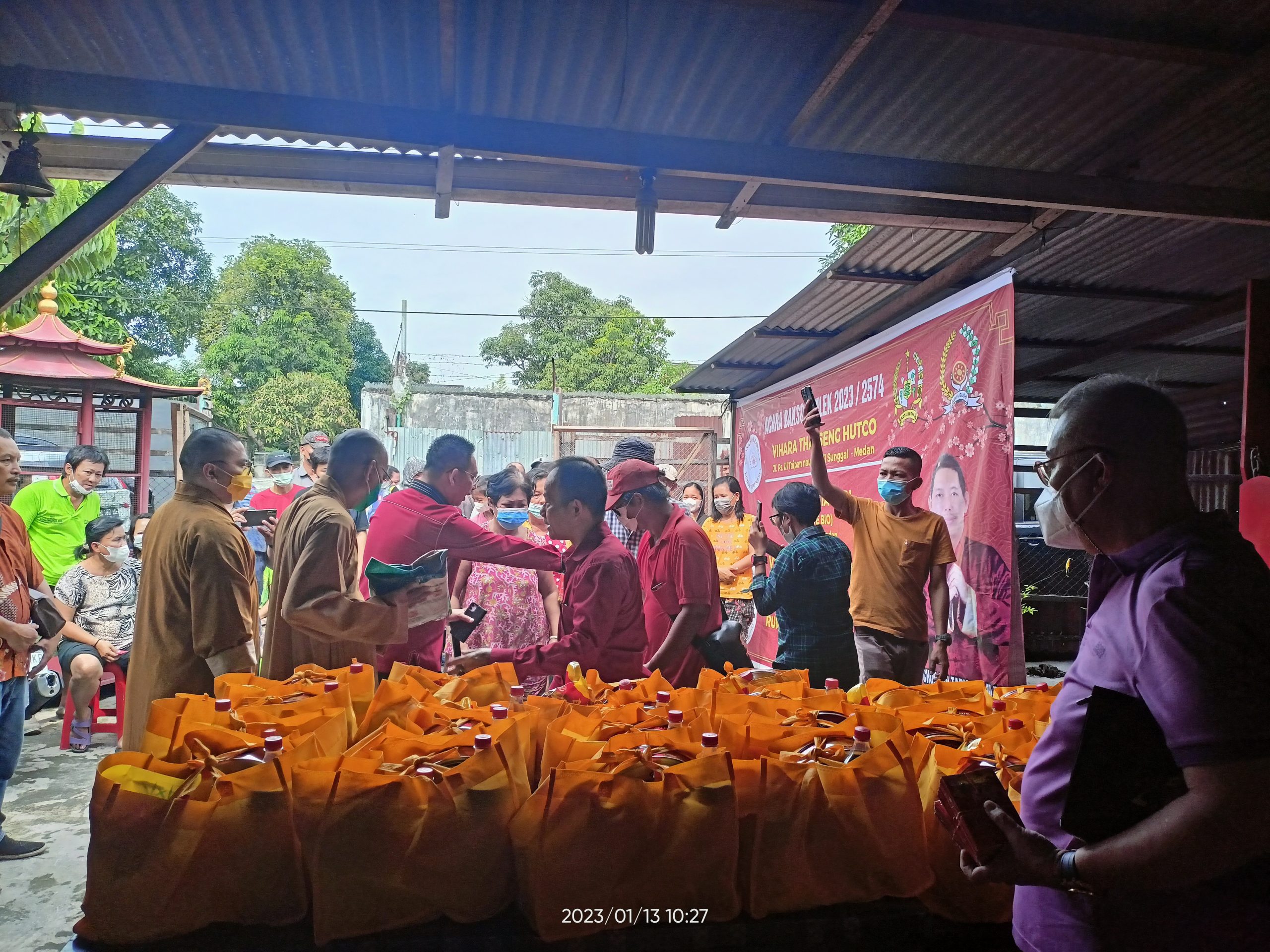 METRORAKYAT.COM, MEDAN – Menjelang hari besar etnis Tionghoa pada Tanggal 22 Februari 2023, Vihara Thai Seng Hutco, yang beralamat di Jalan Tapian Nauli Sunggal, Vihara Setia Budi (Kuan Te Bio), Jalan Irian Barat, Vihara Buddha Murni (Tie Can Tien) Jalan Tanjung Morawa, RS Martha Friska Medan dan Rumah Duka Medan Murni Jalan Pancing Medan melakukan Peduli Kasih Imlek dengan membagikan sebanyak 100 paket sembako kepada warga etnis Tionghoa di sekitar Jalan Tapian Nauli dan Kelurahan Sunggal Kota Medan, Jumat (13/1).