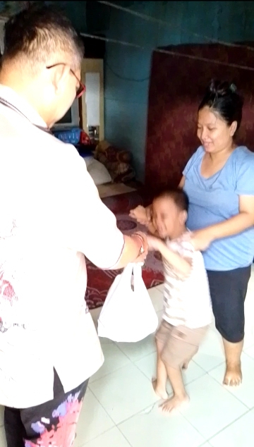 Perjalanan kemudian dilanjutkan ke rumah Adriel Delano Siagian (5), balita penderita stunting di Jalan Gurila, Kecamatan Medan Perjuangan. Kondisi Adriel terlihat jauh lebih baik. Dalam kunjungan itu, Wong menyerahkan bantuan berupa susu, vitamin, dan beras kepada orang tua Adriel.