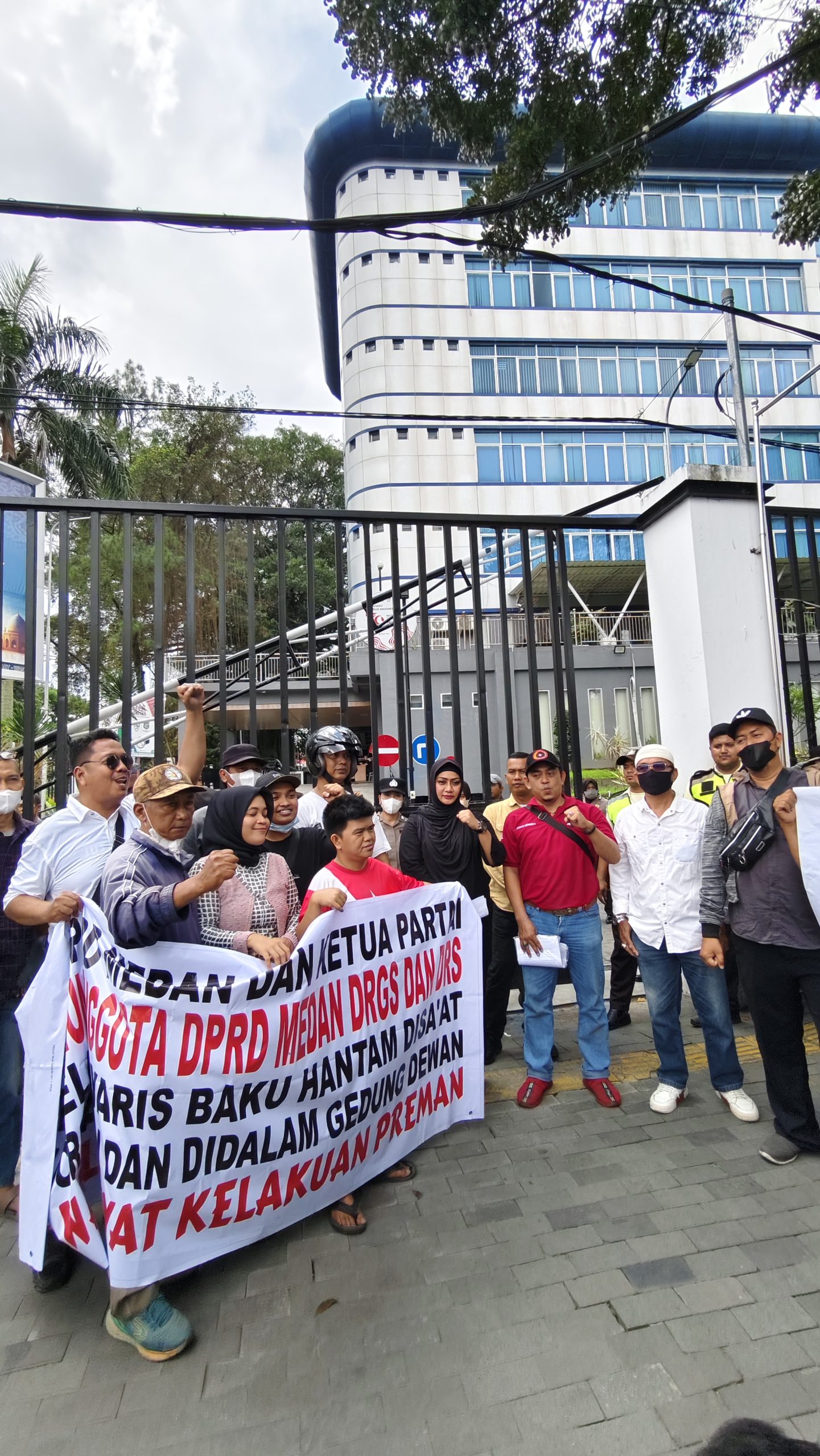“Kami melihat perbuatan kedua oknum wakil rakyat yakni DS dan DRS sudah memalukan. Seharusnya gedung DPRD Medan diisi oleh wakil rakyat yang dapat menjadi panutan dan contoh bukan perwakilan preman yang tidak menunjukkan etika santun bagi masyarakat kota Medan, “teriak massa pendemo.