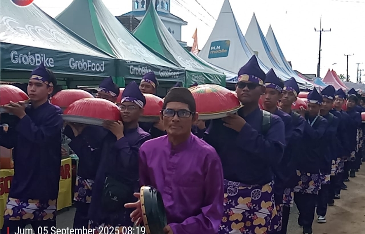 Tradisi Nganggung Sedulang Seribu Kisah Hadir Pada Festival Nganggung Saat Peringatan Maulid Nabi Muhammad SAW 1446 H/2025 M di Masjid Al Muqarrom Tuatunu